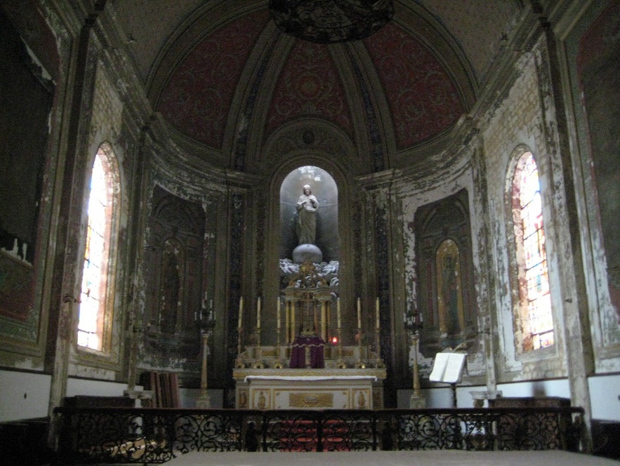 Altar of St. Vivien (note the peeling paint), Saintes, Francce.