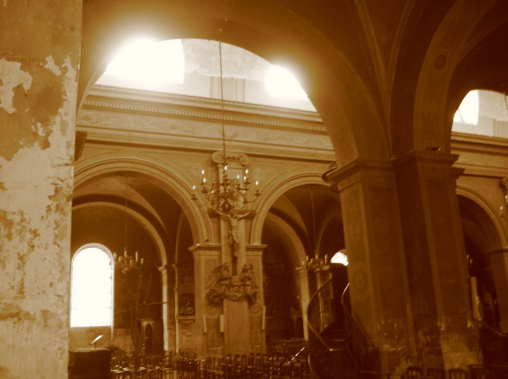 Interior of the church of St. Louis, Rochefort, France. More peeling paint.