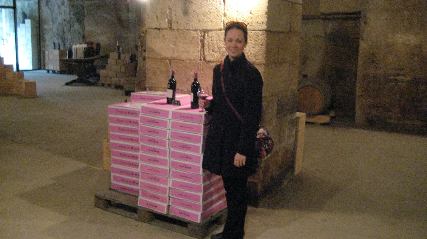 Lee Anne Violet, author, inside caves of Maison Galhaud winery, Saint-Émilion, France.