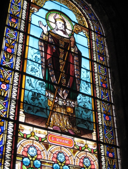 Glass window, Patron saint, St. Vivien.