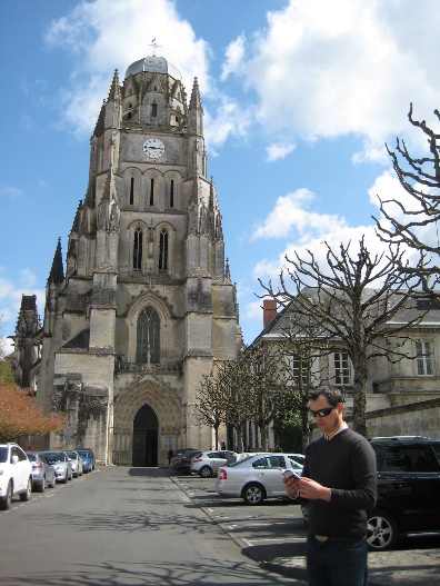 Jacob Violet in front of Saint-Pierre Cathedral, Saintes, France.