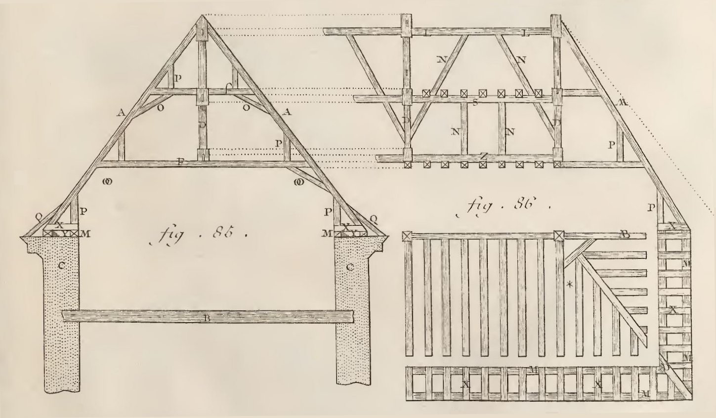 Figure 8. Woodcut showing typical roof construction: Courtesy Recuel de Planches