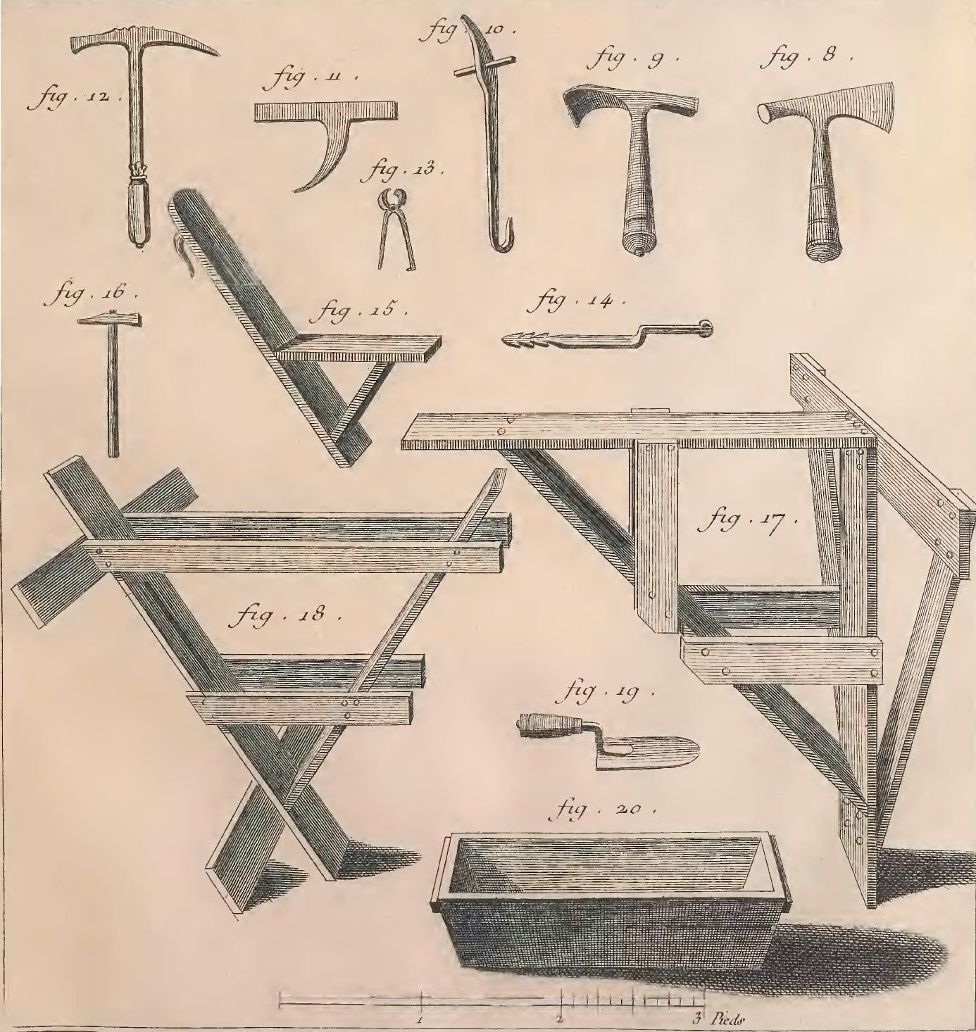 Woodcut showing tools of a Couvreur: Courtesy Recueil de Planches