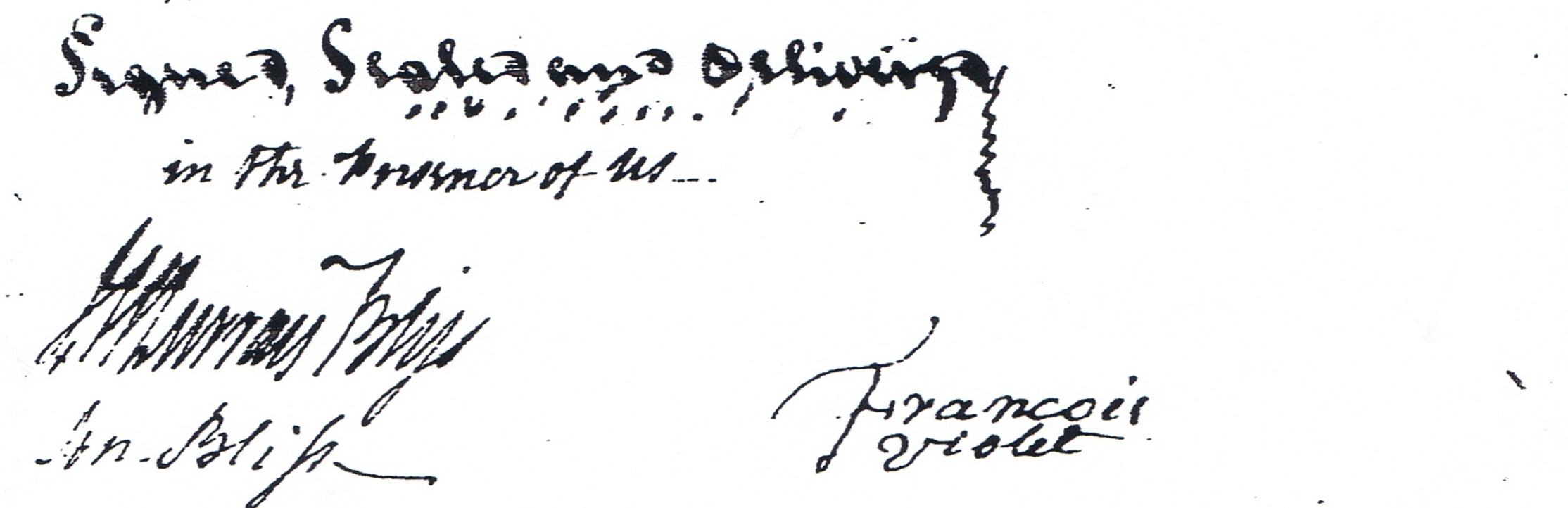 Francois Violet signed this contract to purchase land from Henry Darling along the Hammond River in January 1790